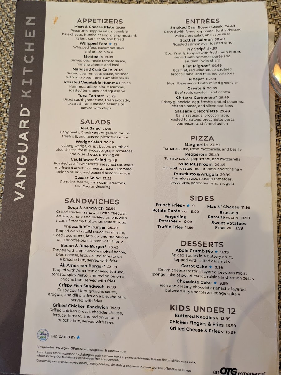 The menu at Vanguard Kitchen offers a thoughtfully curated selection of New American dishes designed for comfort and simplicity, perfectly suited for an airport setting where ease and flavor come together. Expect a range of approachable meals—from hearty entrées like the Vanguard Orecchiette and hand-cut Truffle Fries to lighter options such as the Avocado Toast and Egg White Omelette with Spinach.